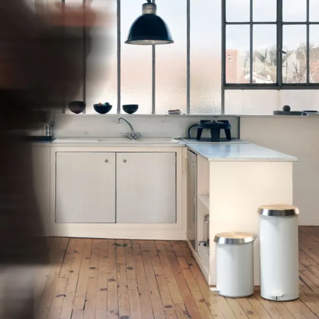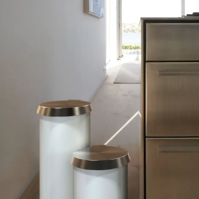 THE FROST PEDAL BIN WHITE est une poubelle à pédale minimaliste, durable et esthétique. Le socle est laqué blanc mat et le couvercle existe en plusieurs finitions. Son design moderne et simple s’intègre dans de nombreux espaces publics et privés, tout en ajoutant personnalité et élégance à la salle de bain, à la cuisine ou au bureau.