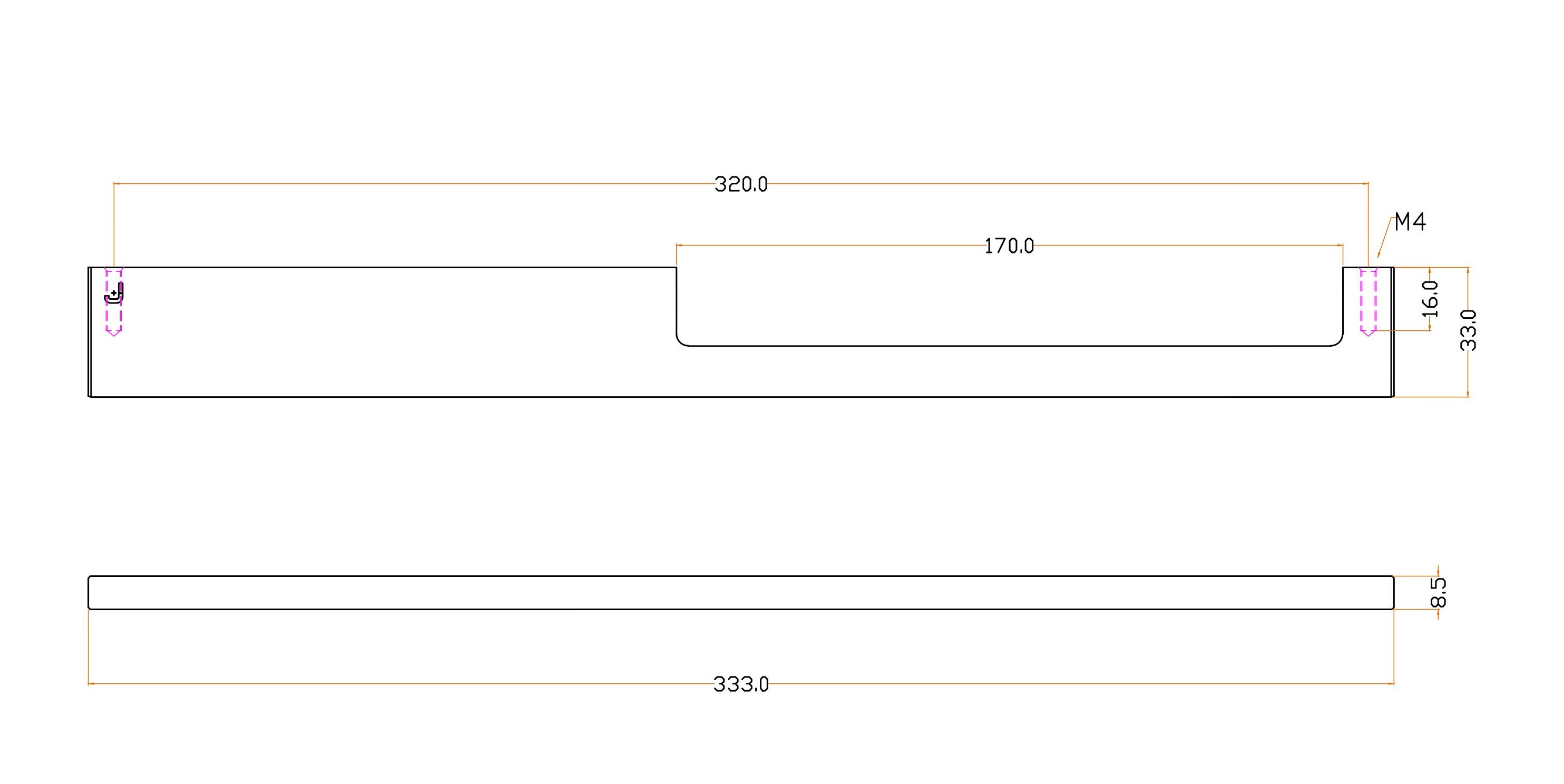 Dimensions 333 x 33 x 8.5 mm