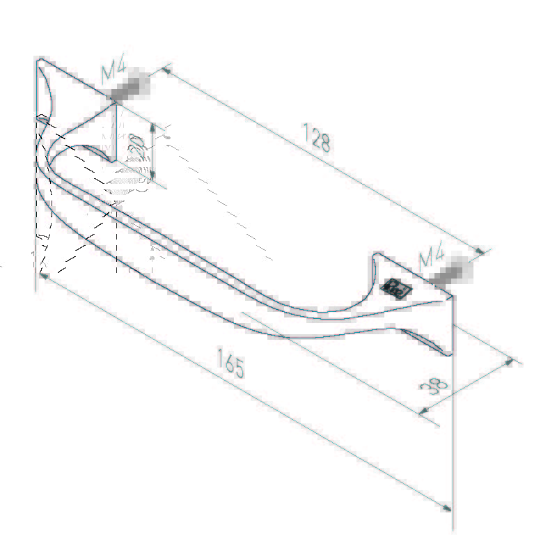 Dimensions 165 x 38 mm Entreaxe 128 mm