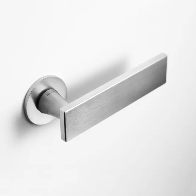 Cette poignée de porte se décline aussi sur rosaces carrées.