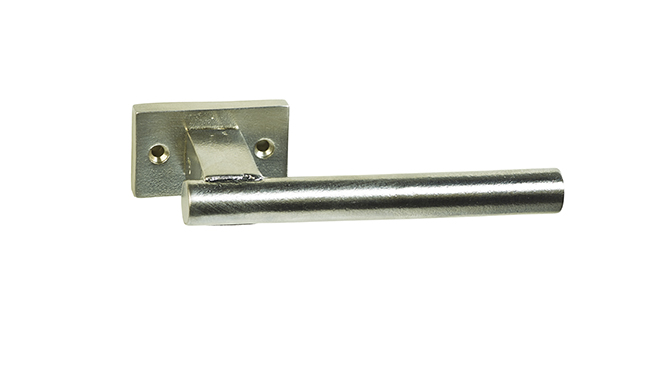 Ensemble de 2 poignées sur rosaces rectangulaires pour équiper une porte complète recto verso.