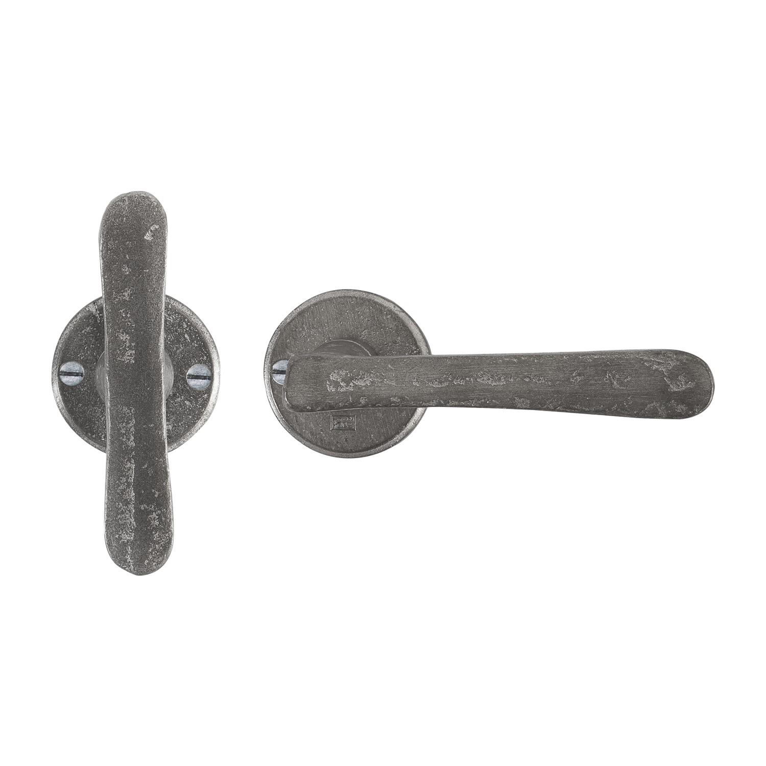 Ensemble de 2 poignées PhTL/50R »T+L »RM sur rosaces rondes pour équiper une porte complète recto verso.
