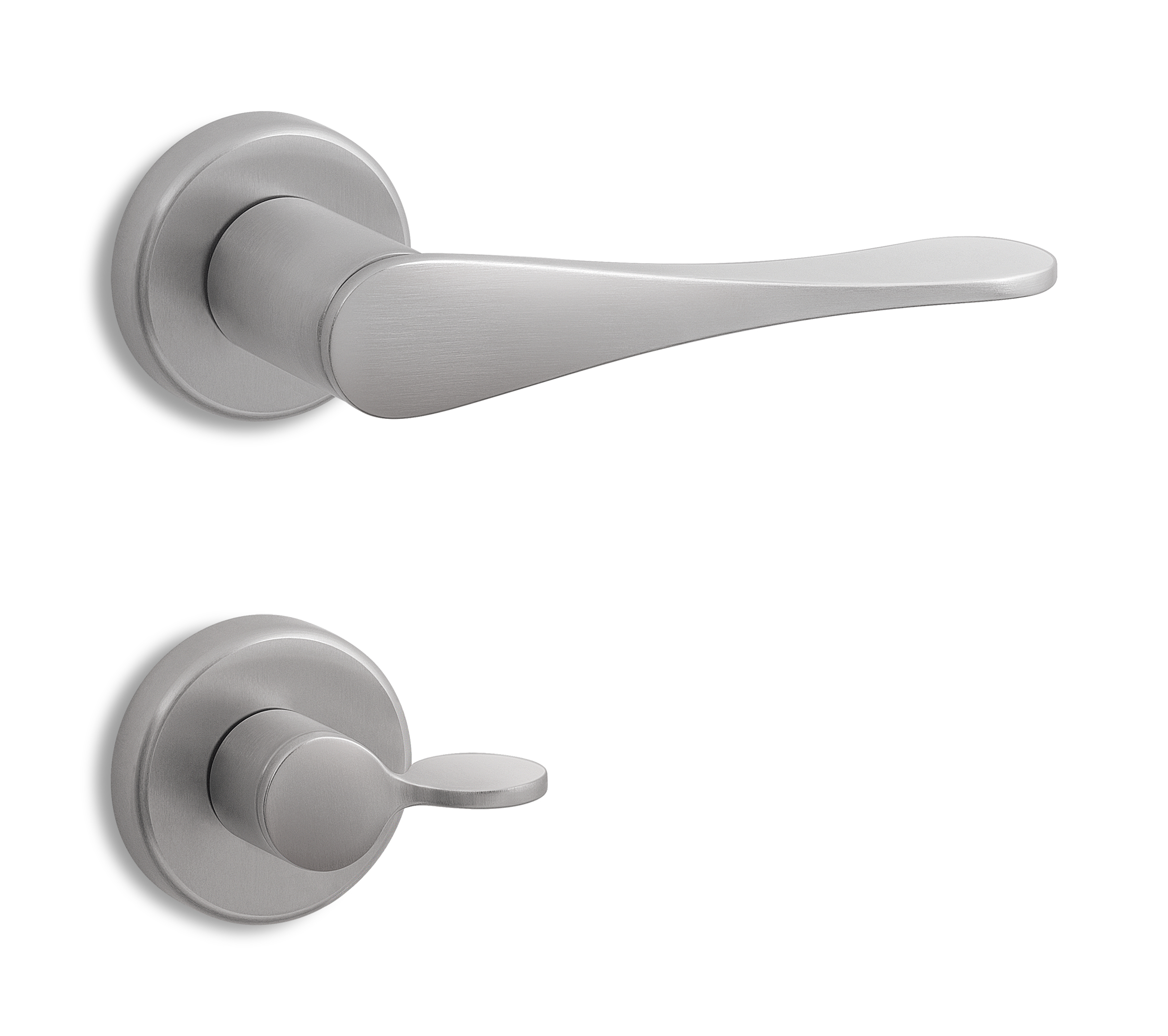 Ensemble de 2 poignées SPOON sur rosaces rondes pour équiper une porte complète recto verso.