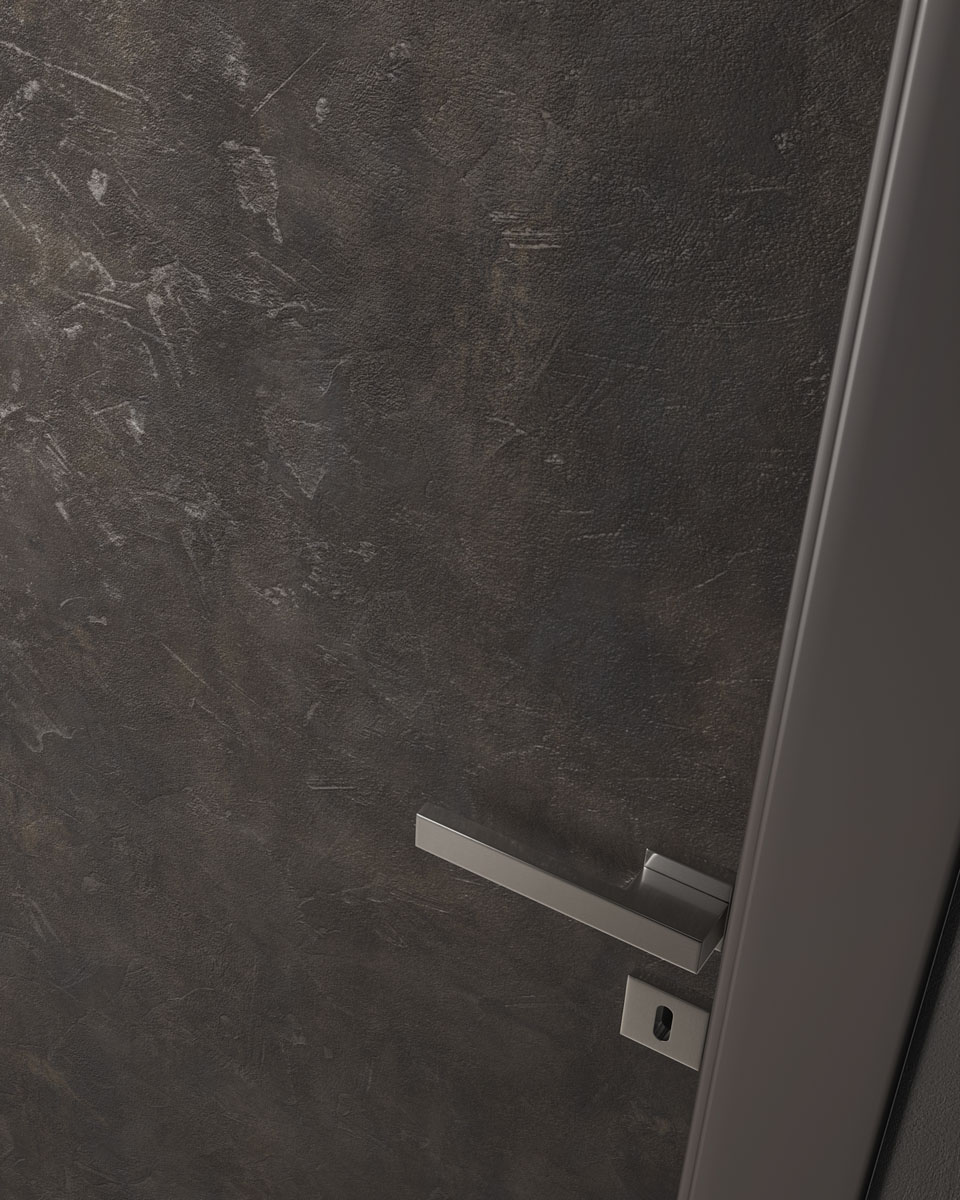 Porte battante fin de chantier marque Gidéa, gamme No Limits, finition Malta Oro Nero.
